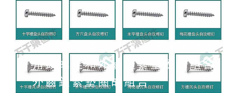 名稱: 1.機螺釘 2.自攻螺釘 3.鉆尾螺釘 4.墻板釘 5.纖維板釘 6.木螺釘7.六角木螺釘 8.不脫出螺釘 9.組合螺釘 10.微型螺釘 11.家具螺釘 12.電子螺釘 頭型: 1.六角頭(hexagon head) 2.六角頭法蘭面(hexagon head with fla